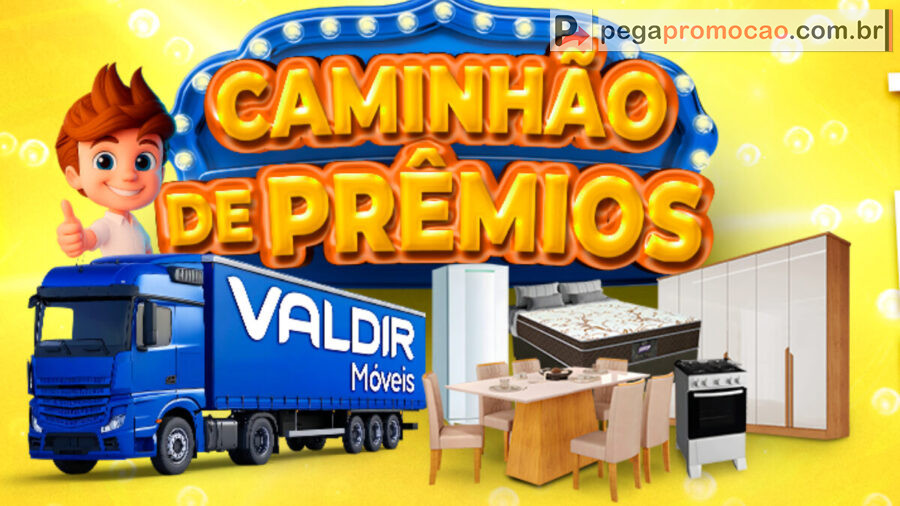 Compre R$ 250 na Valdir Móveis até 31/01/2026 e concorra a um Caminhão de Prêmios com móveis e eletros. Saiba como participar da Promoção!